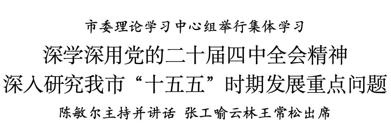 11月10日,十二屆市委理論學(xué)習(xí)中心組舉行集體學(xué)習(xí),認(rèn)真學(xué)習(xí)貫徹黨的二十屆四中全會精神,結(jié)合深入貫徹落實(shí)習(xí)近平總書記視察天津重要講話精神,聯(lián)系思想和工作實(shí)際,交流學(xué)習(xí)體會,研究我市“十五五”時(shí)期發(fā)展重點(diǎn)問題,進(jìn)一步明確工作思路舉措,推動全會部署落地落實(shí)。