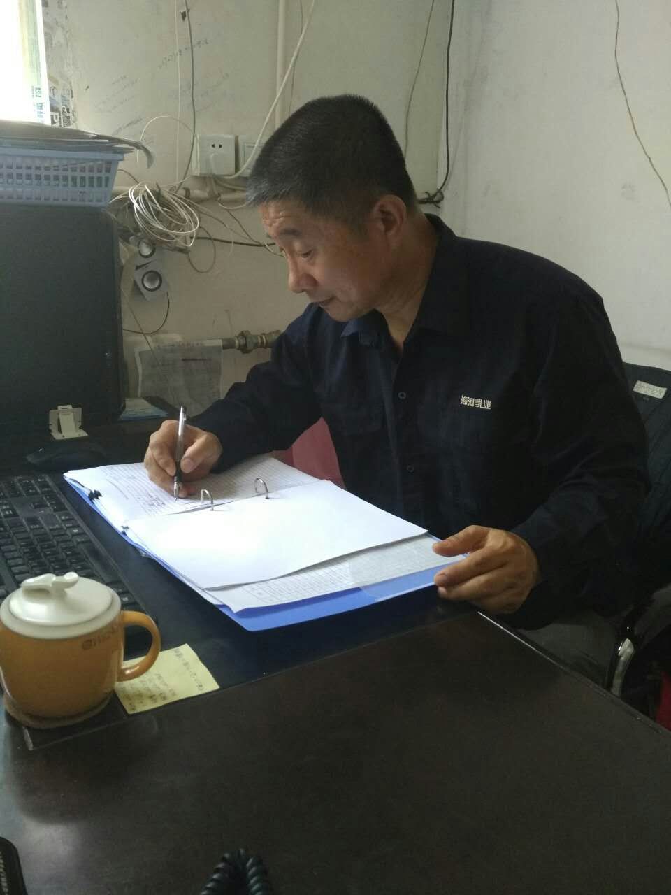 2011年,巴氏部專門負(fù)責(zé)奶站年檢工作的職工退休,為響應(yīng)公司簡編增效的工作要求,巴氏部決定不再增補(bǔ)人員。于是,常忠誠主動(dòng)承擔(dān)起了退休人員留下的巴士部全部奶站的營業(yè)執(zhí)照年檢工作。從此他身邊就多了一輛自行車,奶站、辦證中心、工商所來回的跑,市內(nèi)六區(qū)遍布了他的足跡,冬寒夏暑,春來秋去,這一干就是5年。