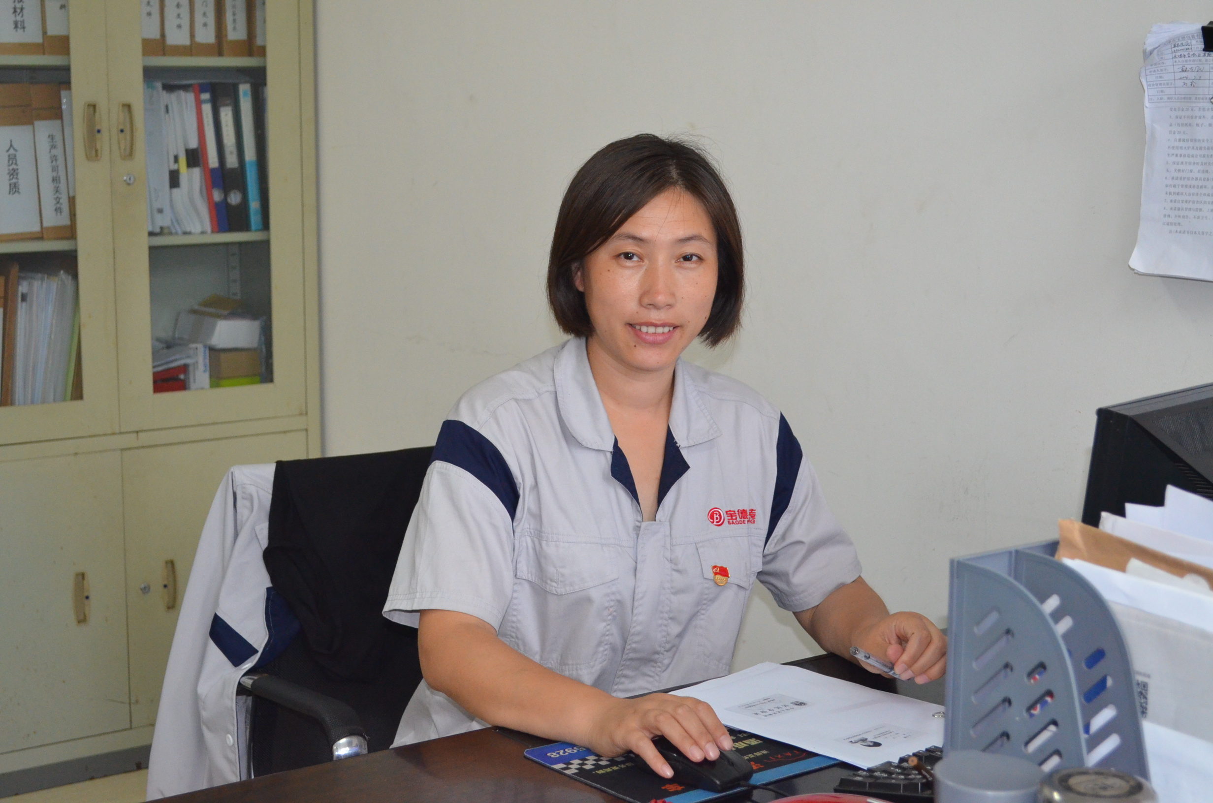 “宮姐,我要充飯卡”、“宮姐,幫我領一支筆”、“宮姐,有兩位新入職的員工,你帶領他們熟悉一下公司環(huán)境”、“宮姐,聯(lián)系一下打印機維修公司,打印機出故障了......”早上七點半,在寶德公司辦公室里,辦公室主任宮鳳賢開始了一天既瑣碎又忙碌的工作。只見她面帶笑容,和顏悅色,跟大家打招呼的同時,熟練利索地幫助每位同事解決問題。雖然,她也是一名80后,但是大家都喊她“宮姐”。