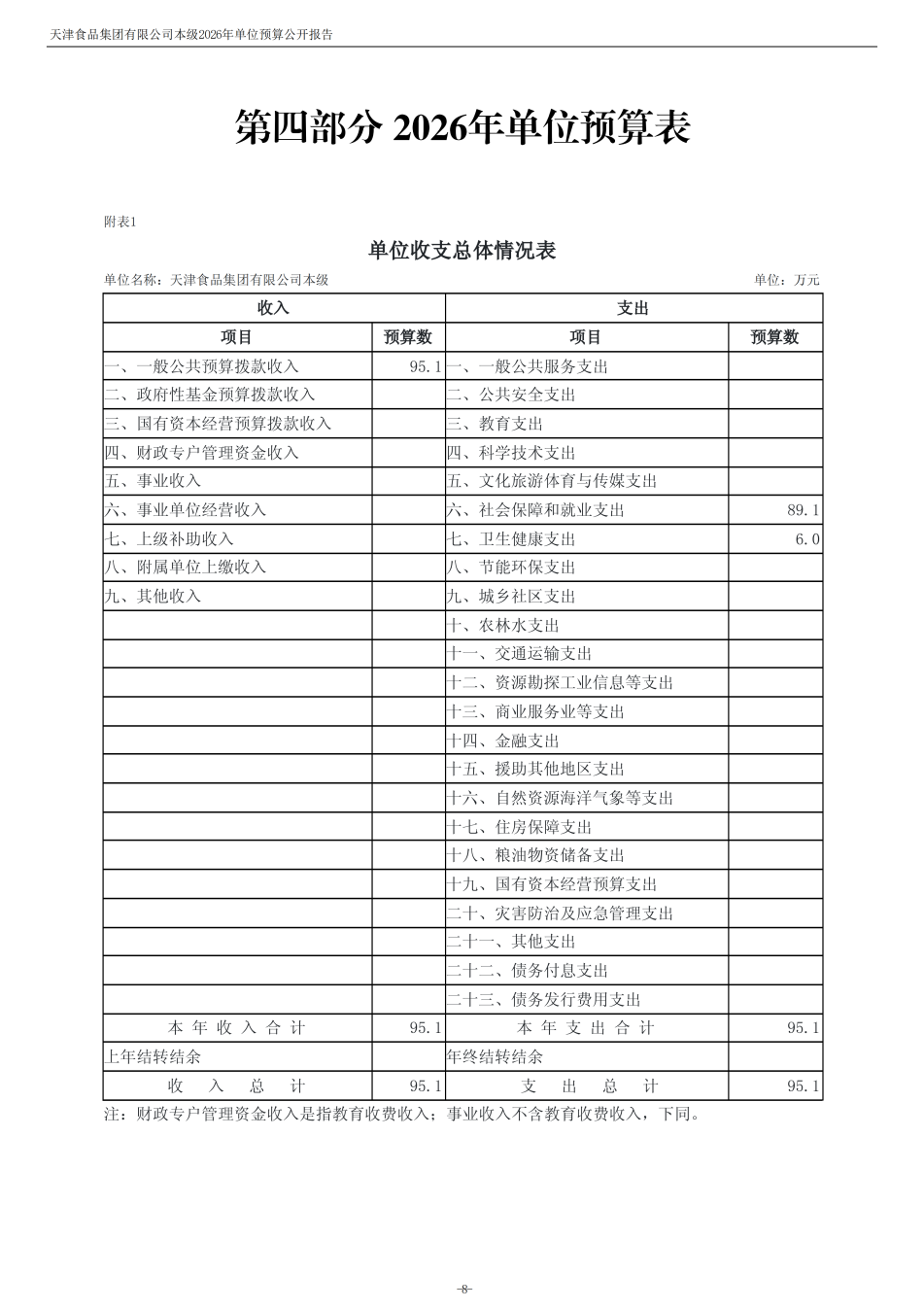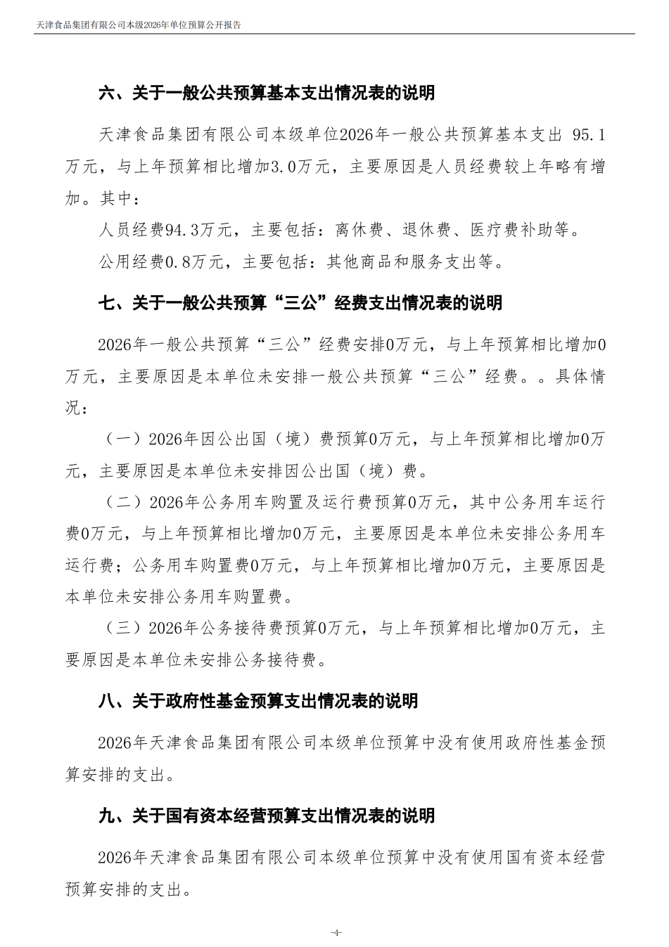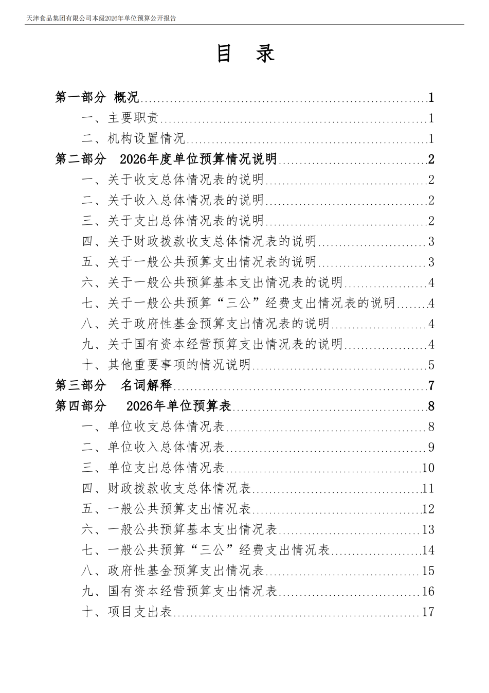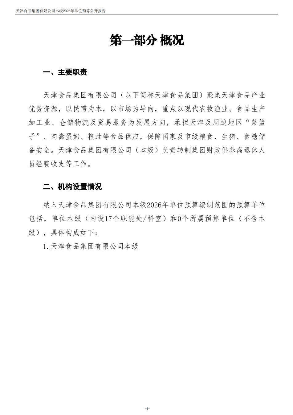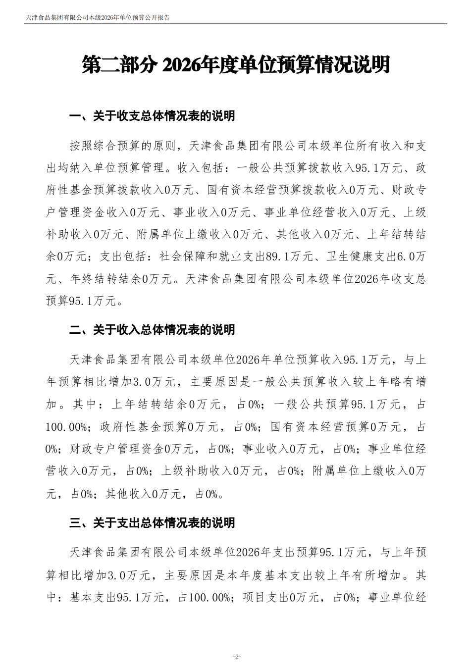 天津食品集團(tuán)有限公司本級2026年度單位預(yù)算