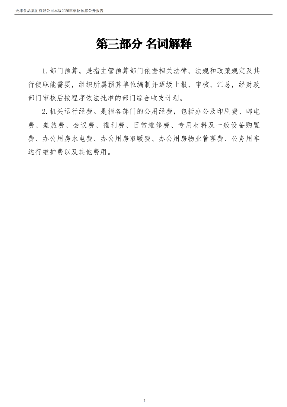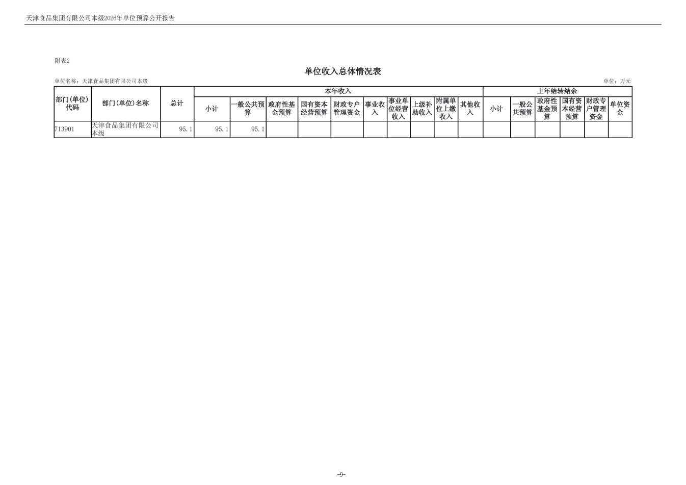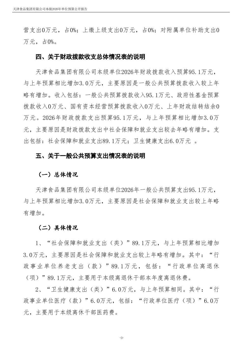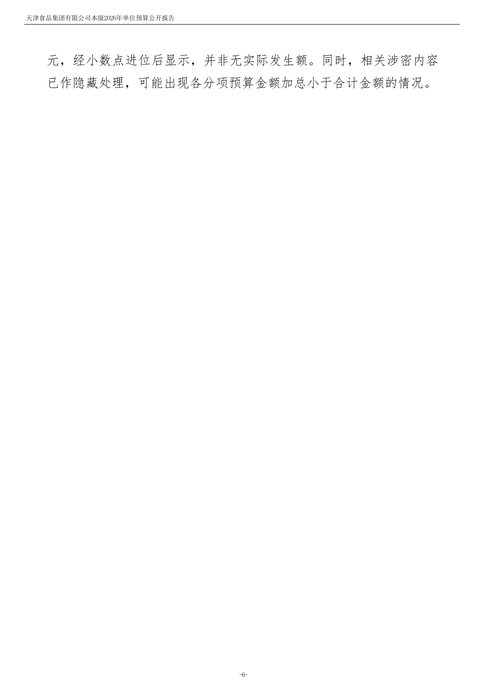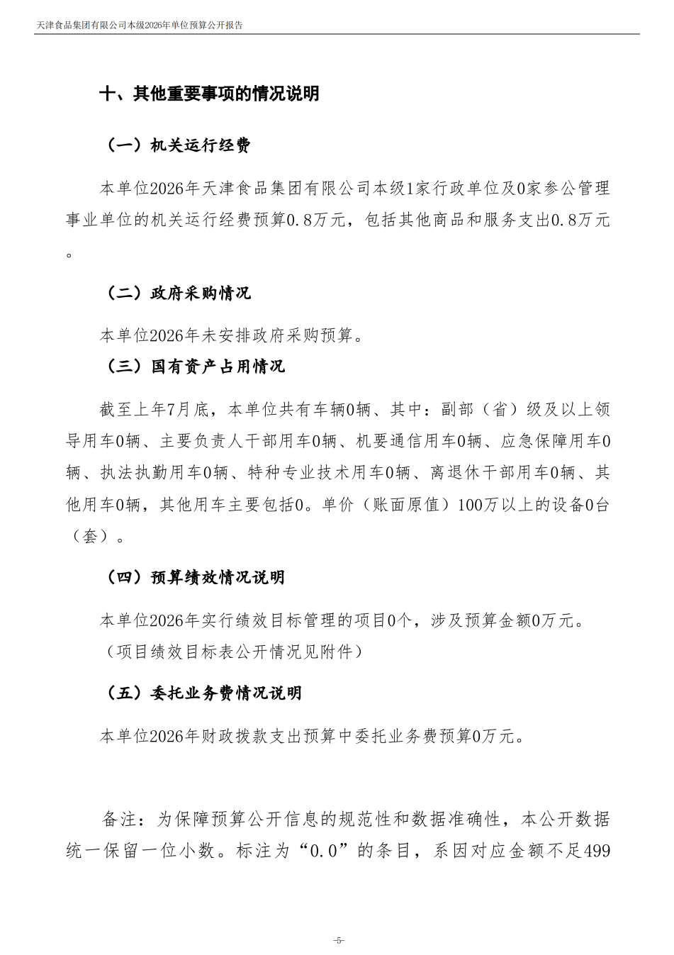 天津食品集團(tuán)有限公司本級2026年度單位預(yù)算