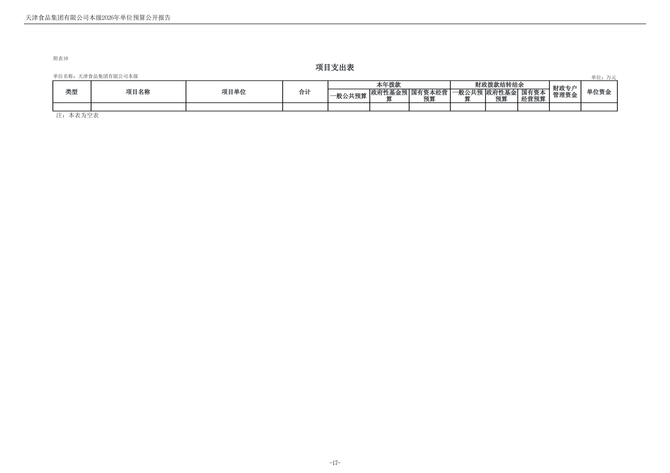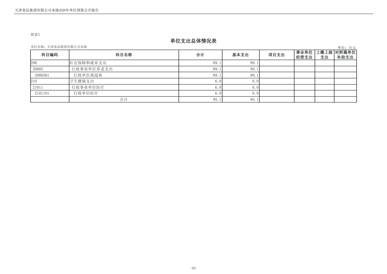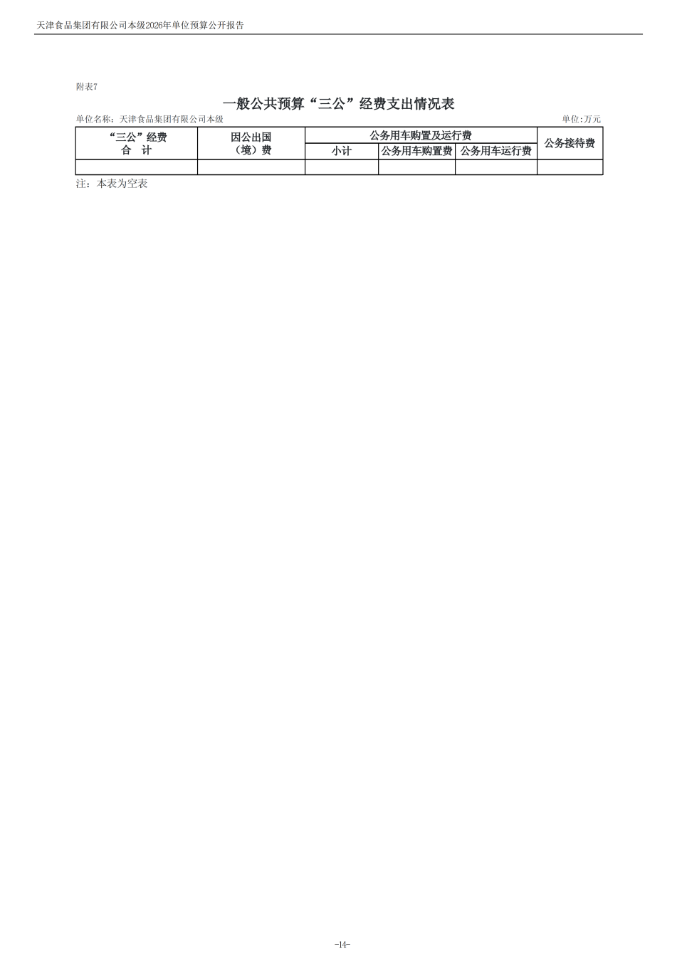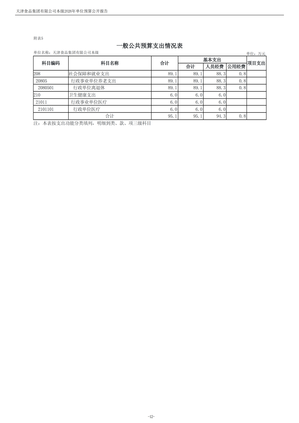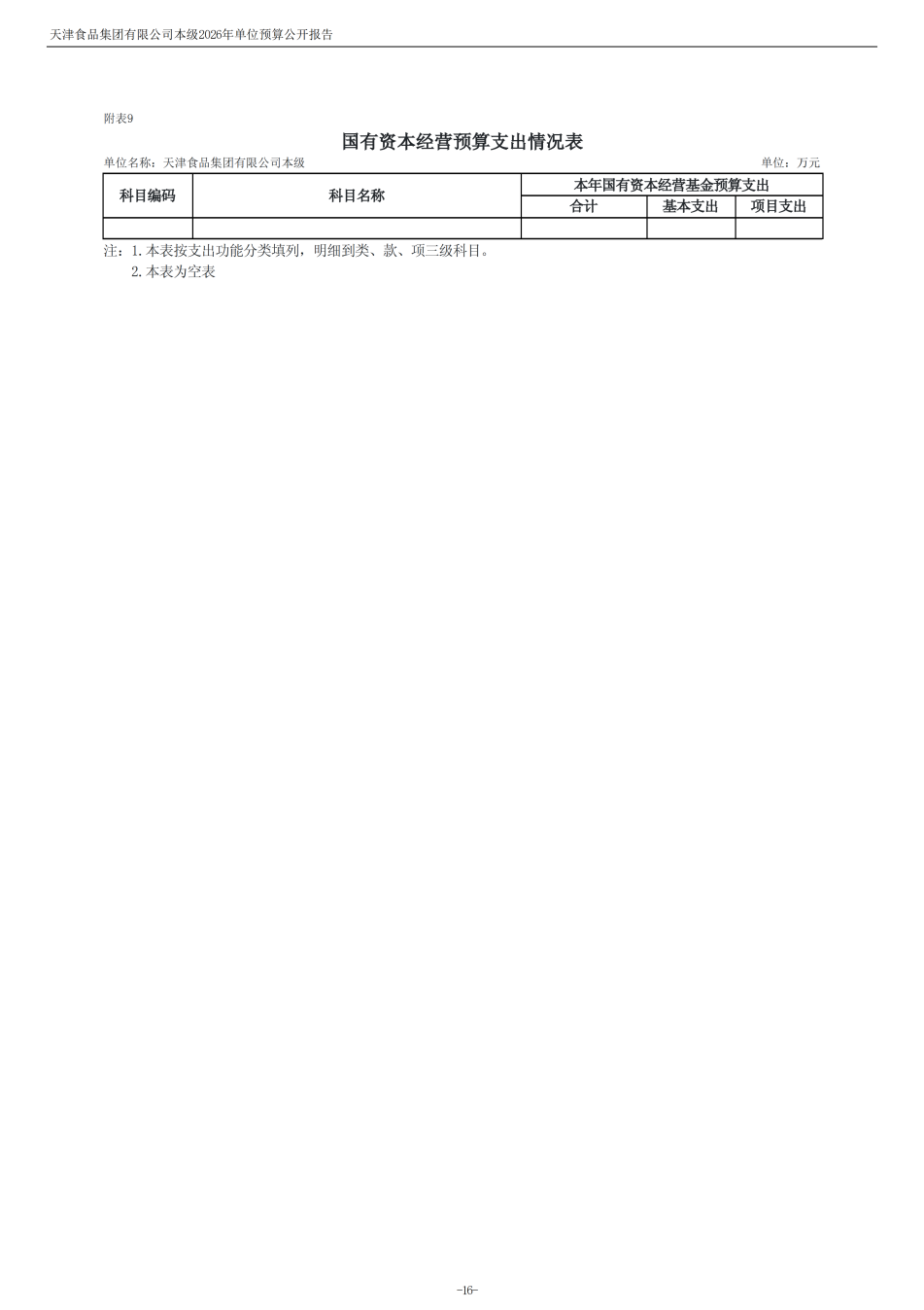 天津食品集團(tuán)有限公司本級2026年度單位預(yù)算