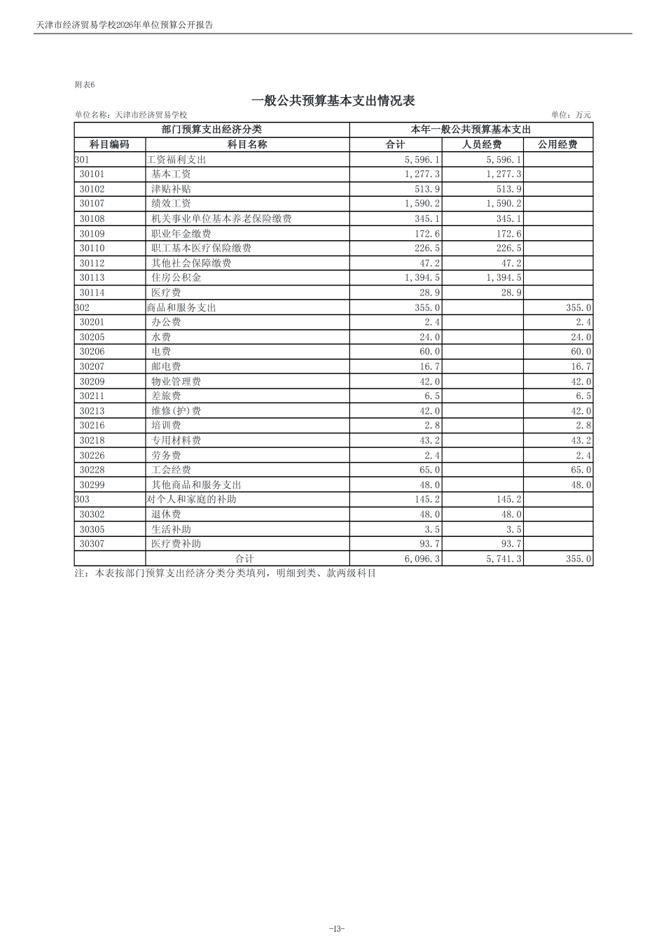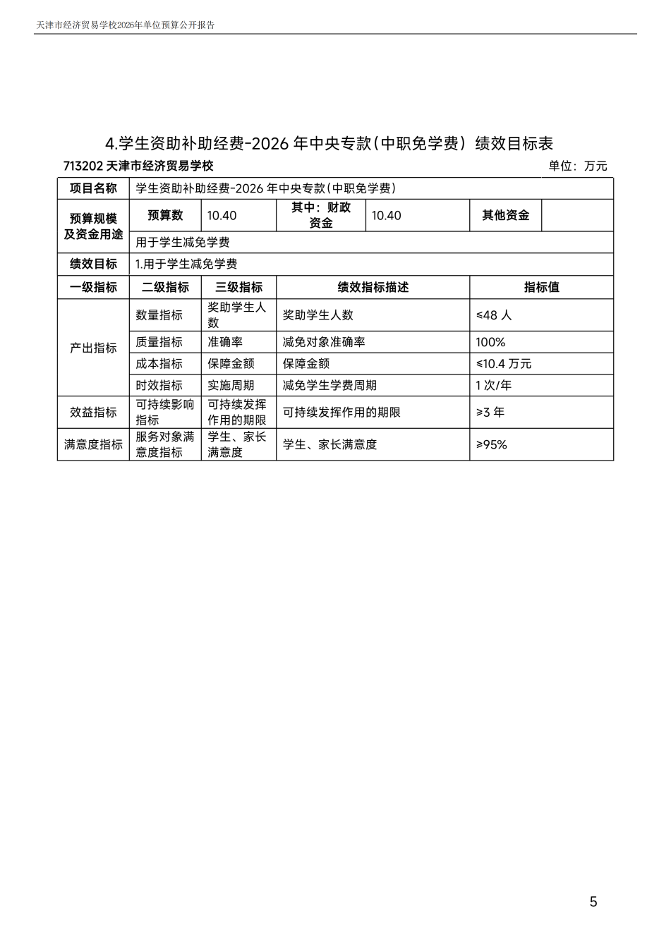 天津市經(jīng)濟(jì)貿(mào)易學(xué)校2026年度單位預(yù)算